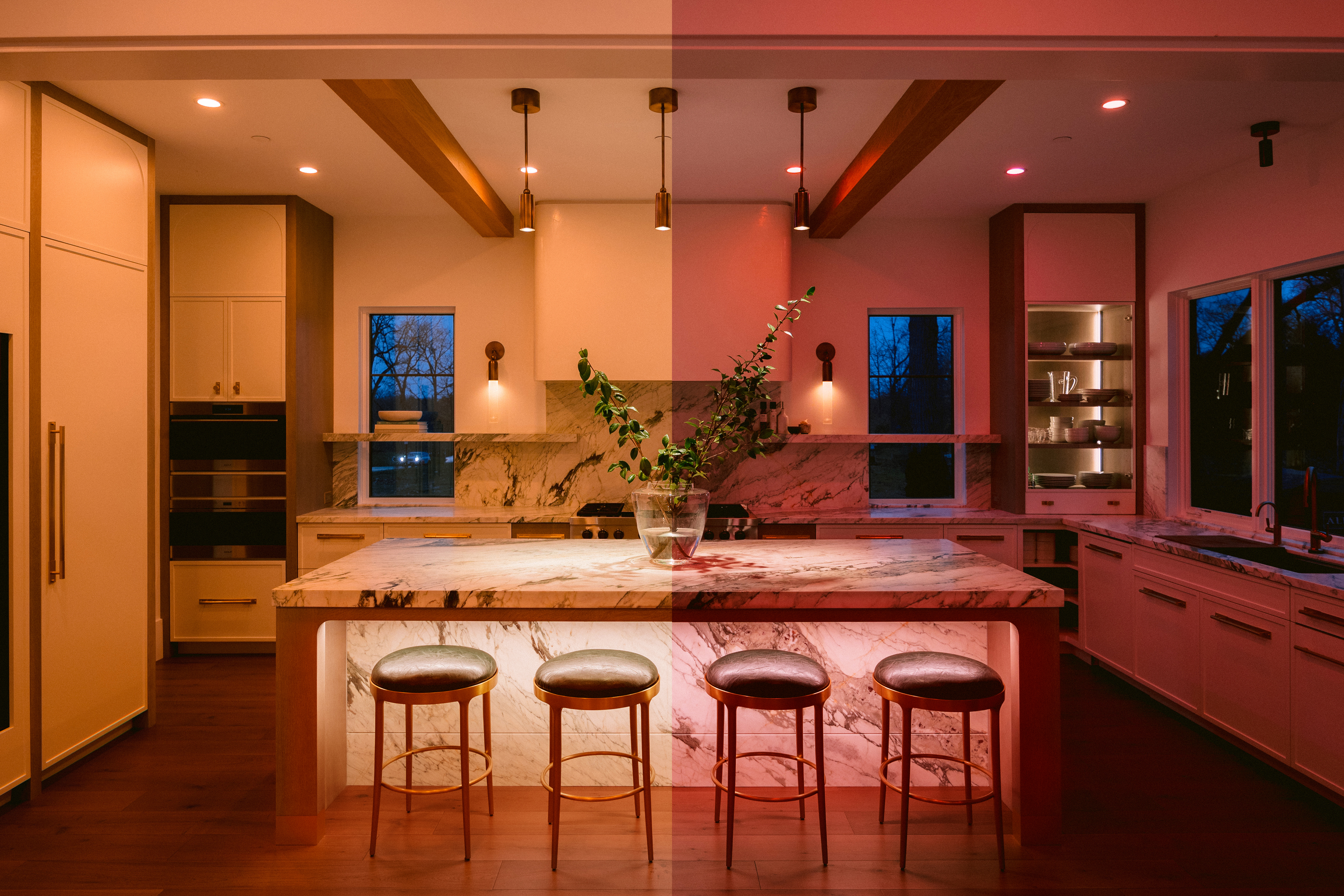 dinner or vibrant lighting for a lively gathering, the home transforms