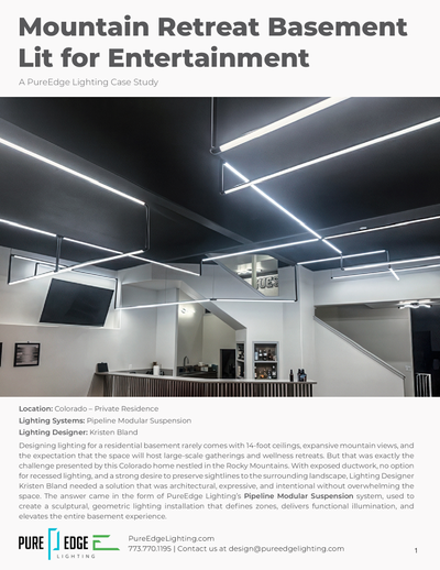 Designing lighting for a residential basement rarely comes with 14-foot ceilings, expansive mountain views, and