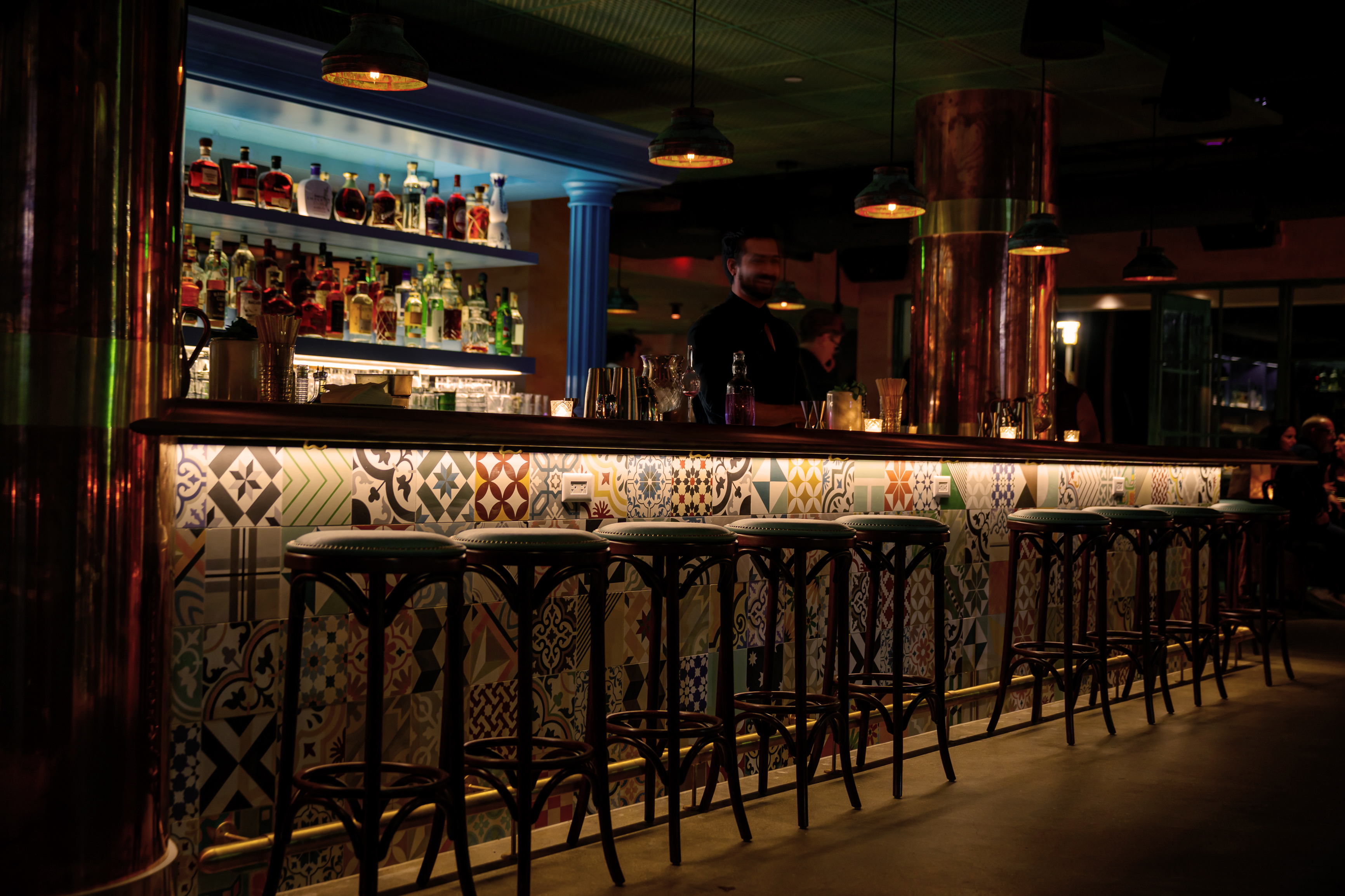 bar, the bottles, and the movement of the bartenders. Everything is very contained. We use a few