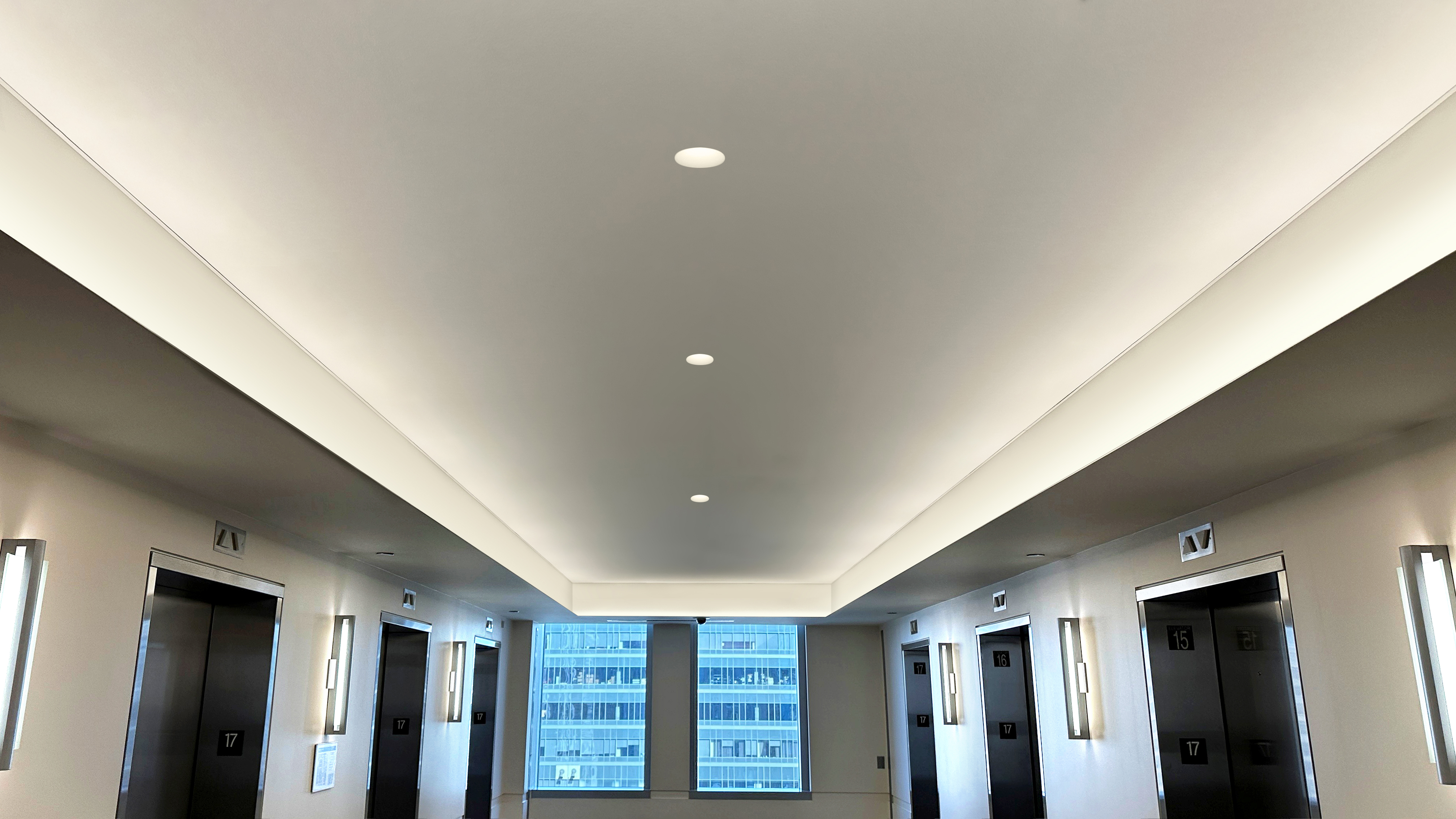 Knife Edge Ceiling is an innovative plaster-in 24VDC system from PureEdge that recesses into 5/8" drywall without joist modification. Its true Knife Edge profile hides the lens and light shield for a clean, uninterrupted visual field across surfaces. The system creates a sharp architectural detail with consistent illumination and fits 5/8" drywall for reveals, accent lighting, and surface-mount uses. Available in multiple wattages and color temperatures (2200K–5700K). Warm Dim options (2700D, 3000D) replicate incandescent dimming, reaching a warm 1800K. Remote power supplies are required and sold separately. Coordinate installation with electrical and drywall teams. Includes a 5-year pro-rated warranty. For custom quotes and layout assistance, send drawings to