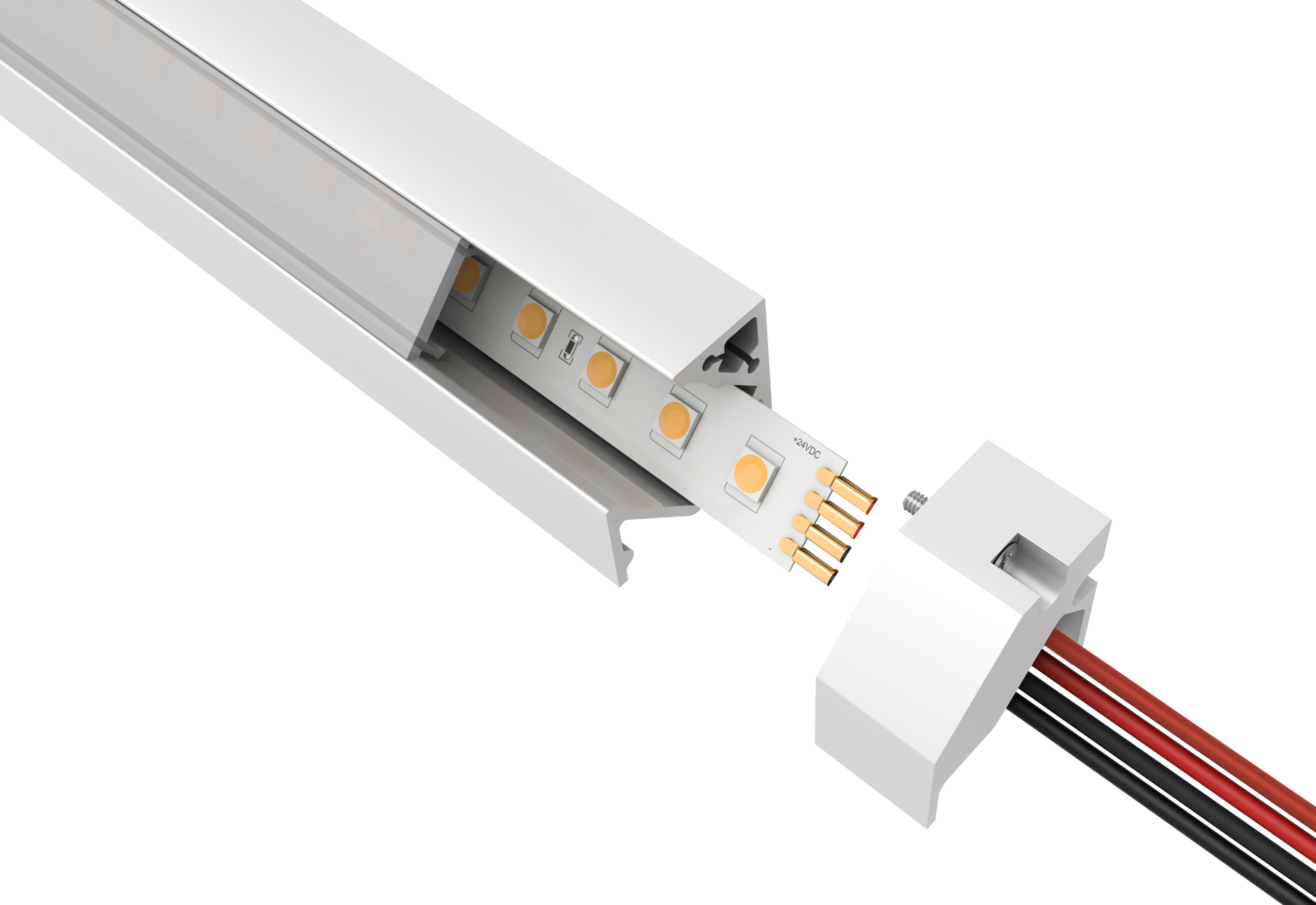 Our DIY (Do-it-Yourself) 45° Surface-mounted Light Channel offers a versatile solution with many custom configurations, and 24VDC, Class 2 power supplies can be remotely located up to 40' away. The channel's unique 45° angle design provides designers with enhanced flexibility when it comes to illuminating challenging areas. Our slim, aluminum channel extrusions, LED strips, and lenses are field-cuttable and ordered in various increments anywhere from 2 to 7 watts per foot. Offered in a broad range of wattages and Color Temperatures from