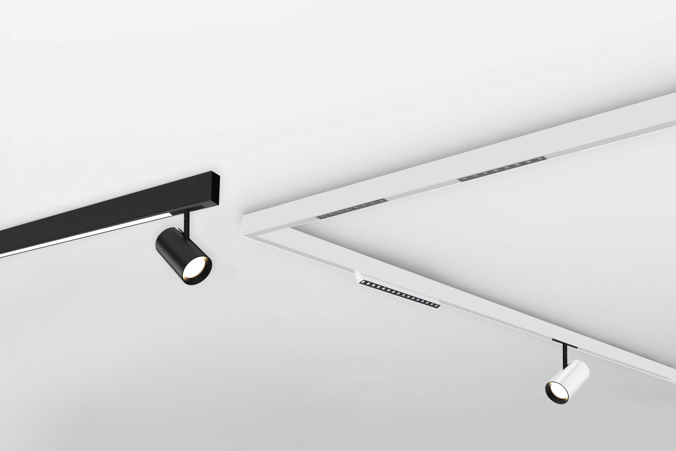 MicroTrack™ Groove Ceiling is a surface mounted channel with a larger profile or 13/16" x 1 9/16", that is engineered to house our high-lumen Light Bars seamlessly within the track, alongside track heads, in a 48VDC Class 2 system. For a refined architectural look, each Track Channel includes a paintable Slot Cover that conceals the copper busbars and mounting hardware. For custom quotes and layout assistance, send your drawings and ideas to our design team:
