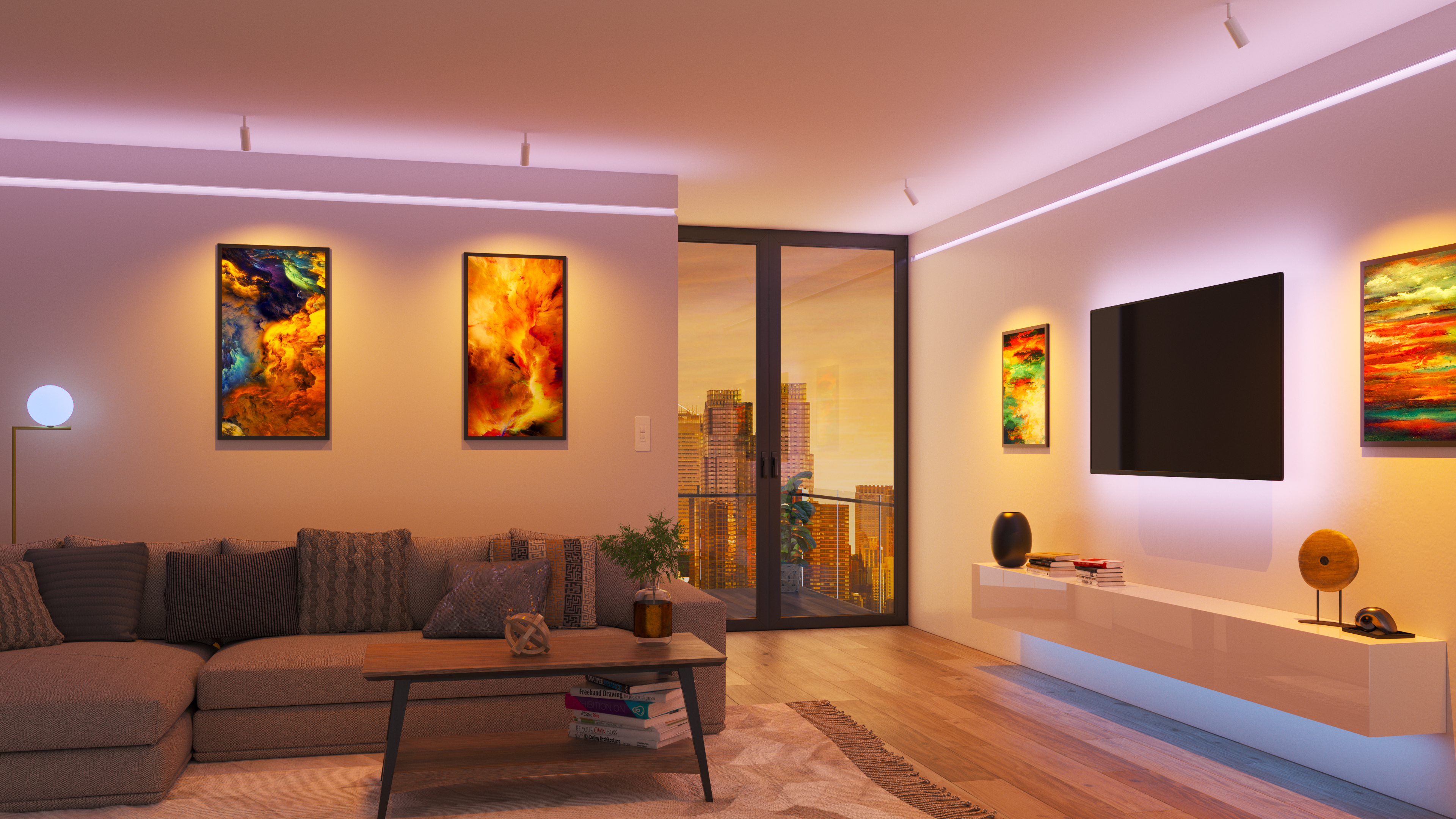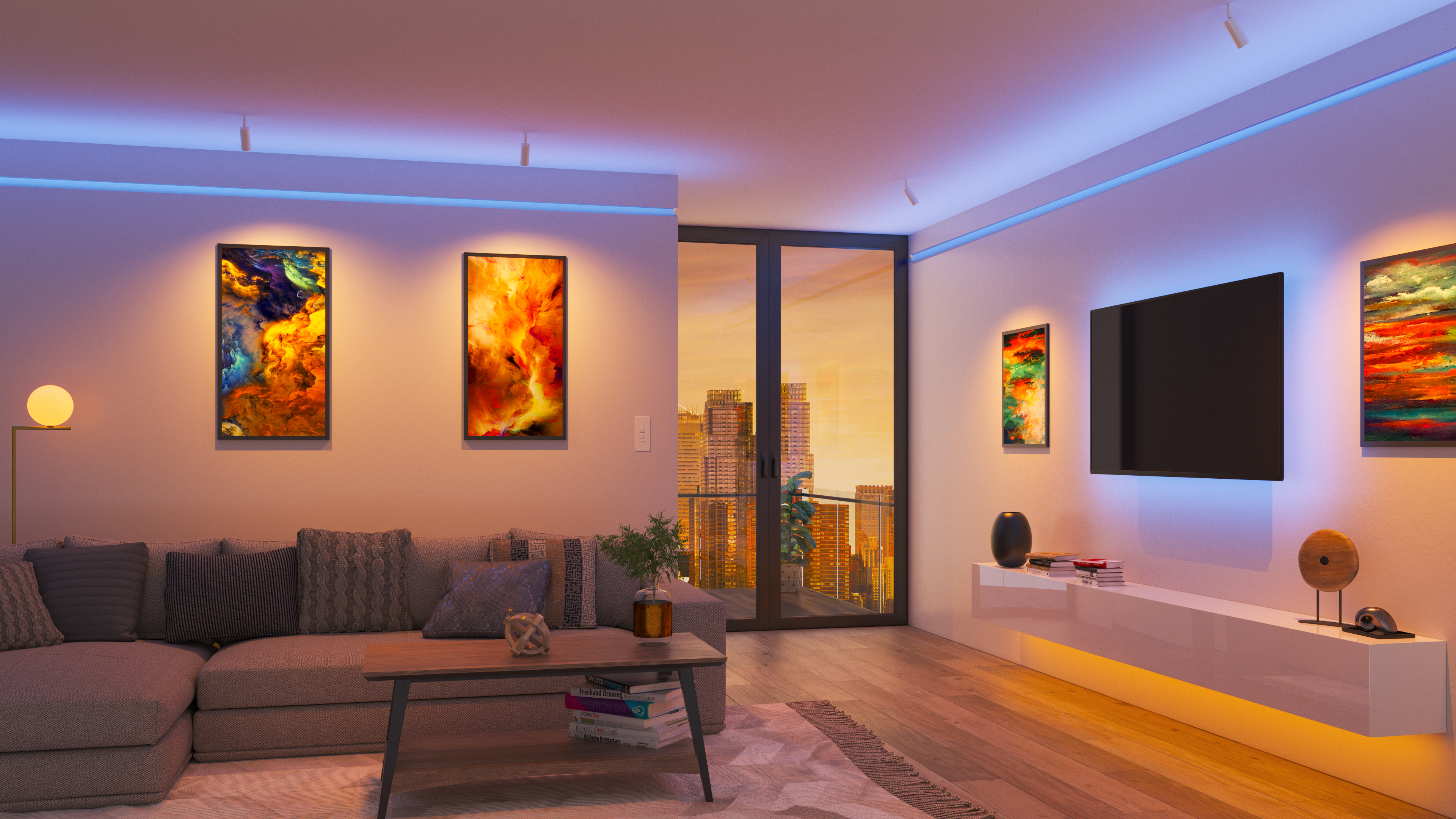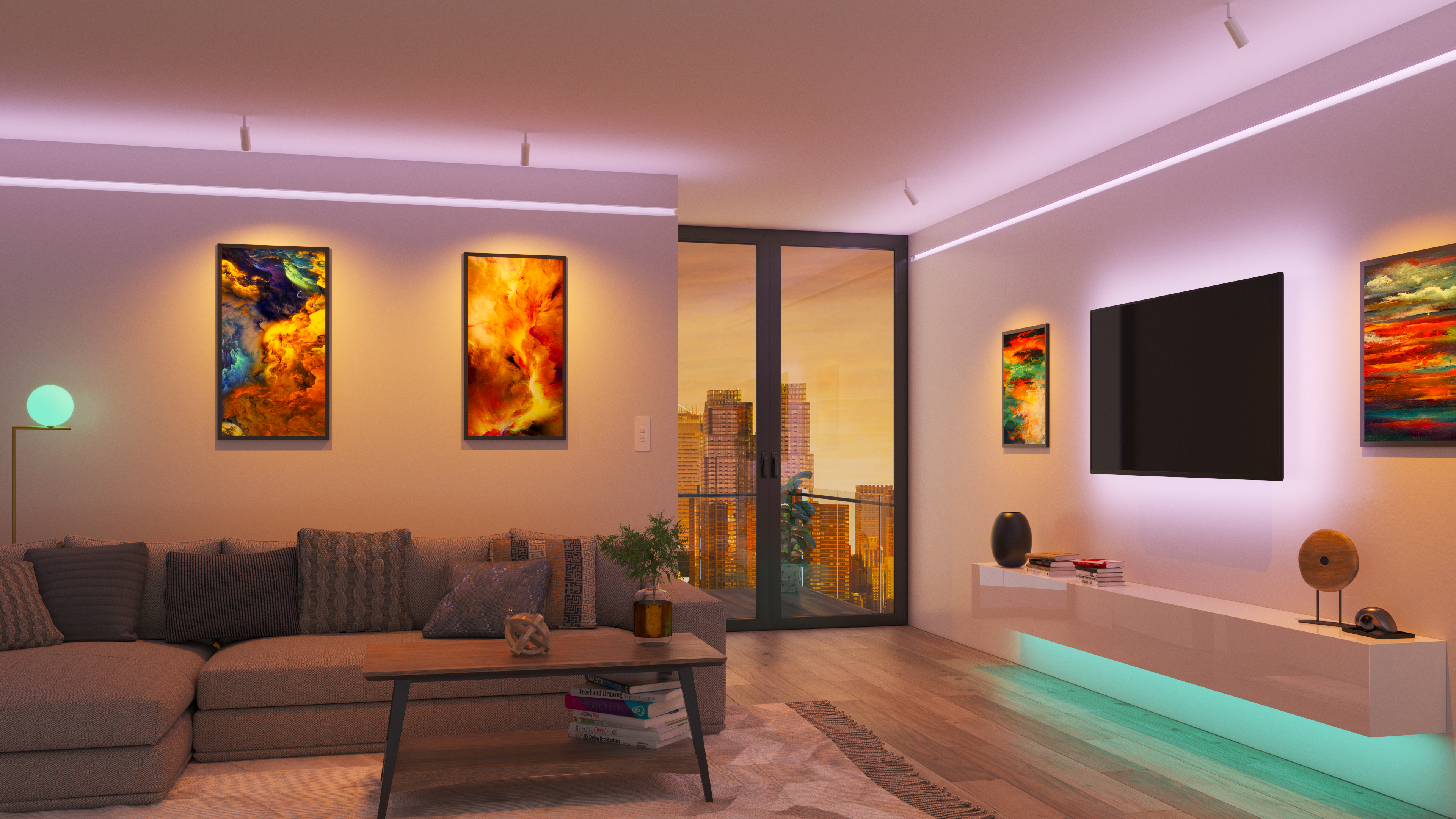 Reveal Cove/Pathway RGB & RGBW is Plaster-in 24VDC LED system that Recesses within 5/8" drywall without any joist modification. Redefining the relationship between Lighting and Interior Design, this innovative system blends seamlessly into the drywall, accenting architecture and serves as a practical wayfinding application. Available in 5 or 6 watts per foot, in RGB and RGB+White, and sold in 1' increments up to 20' (