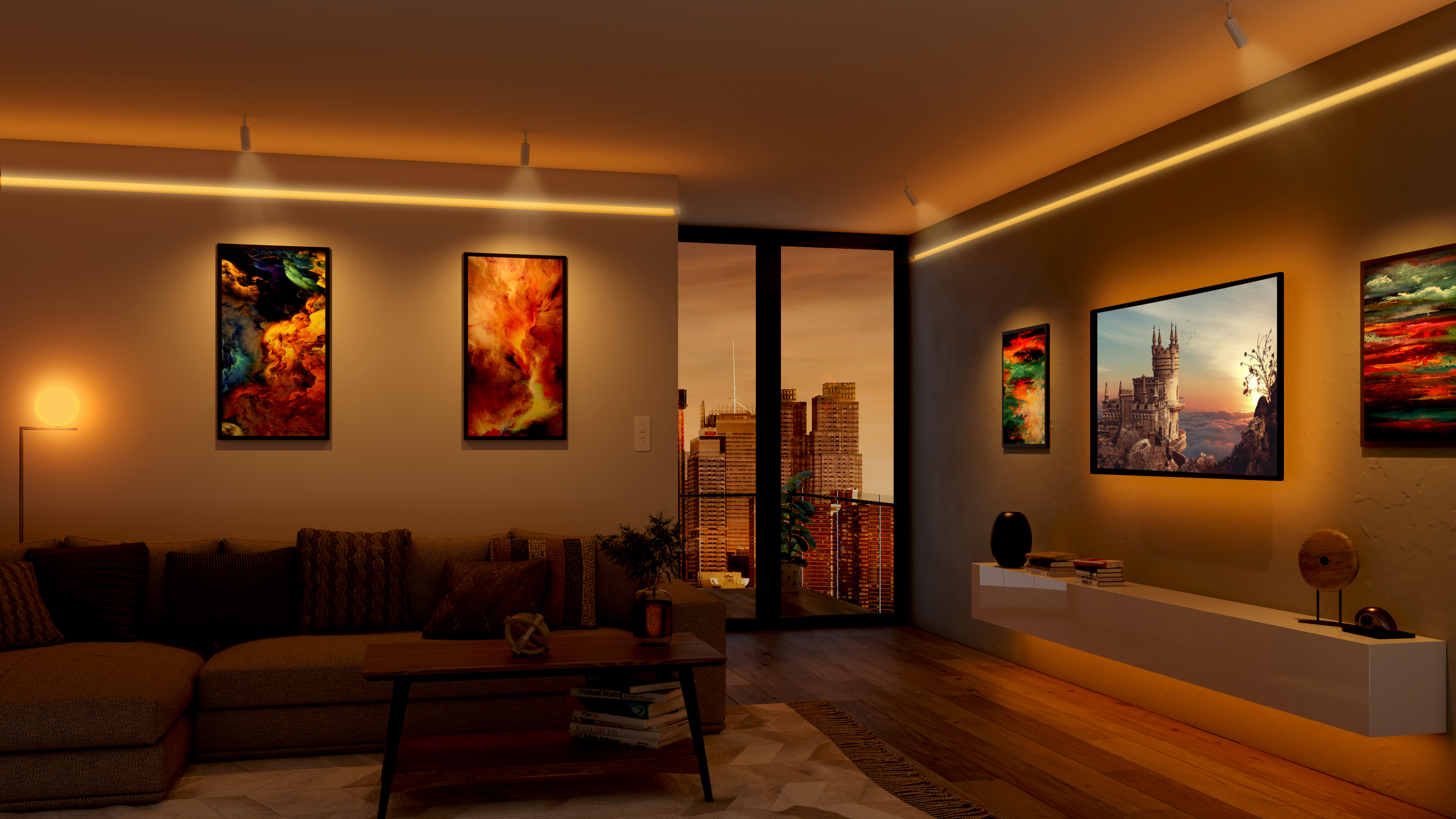 Reveal Cove/Pathway Tunable White is Plaster-in 24VDC LED system that Recesses within 5/8" drywall without any joist modification. Redefining the relationship between Lighting and Interior Design, this innovative system blends seamlessly into the drywall, accenting architecture and serves as a practical wayfinding application. The slim extrusions and LED strips are field cuttable and ordered in 1' increments (up to 40' before re-feeding). Multiple runs of channel mount flawlessly together providing smooth and Glare-free general illumination. Using the latest in LED technology, Dynamic Tunable White 2000K-6500K (