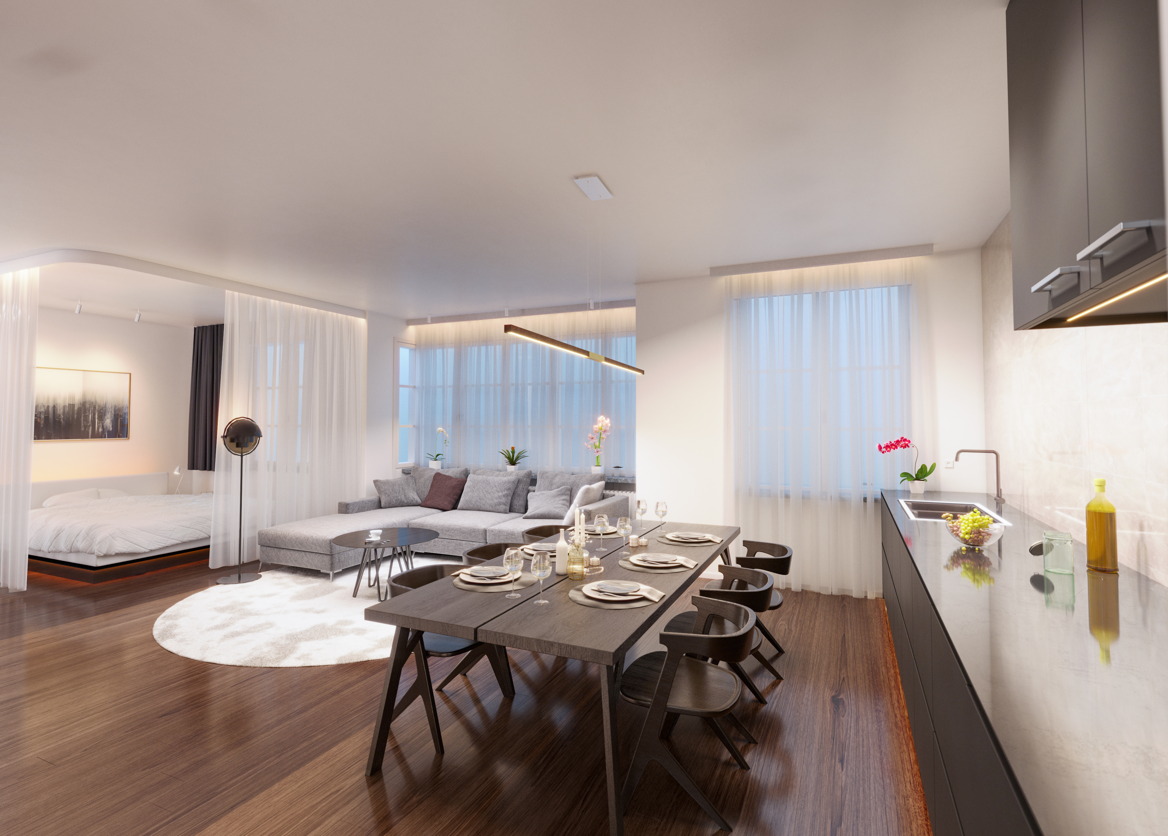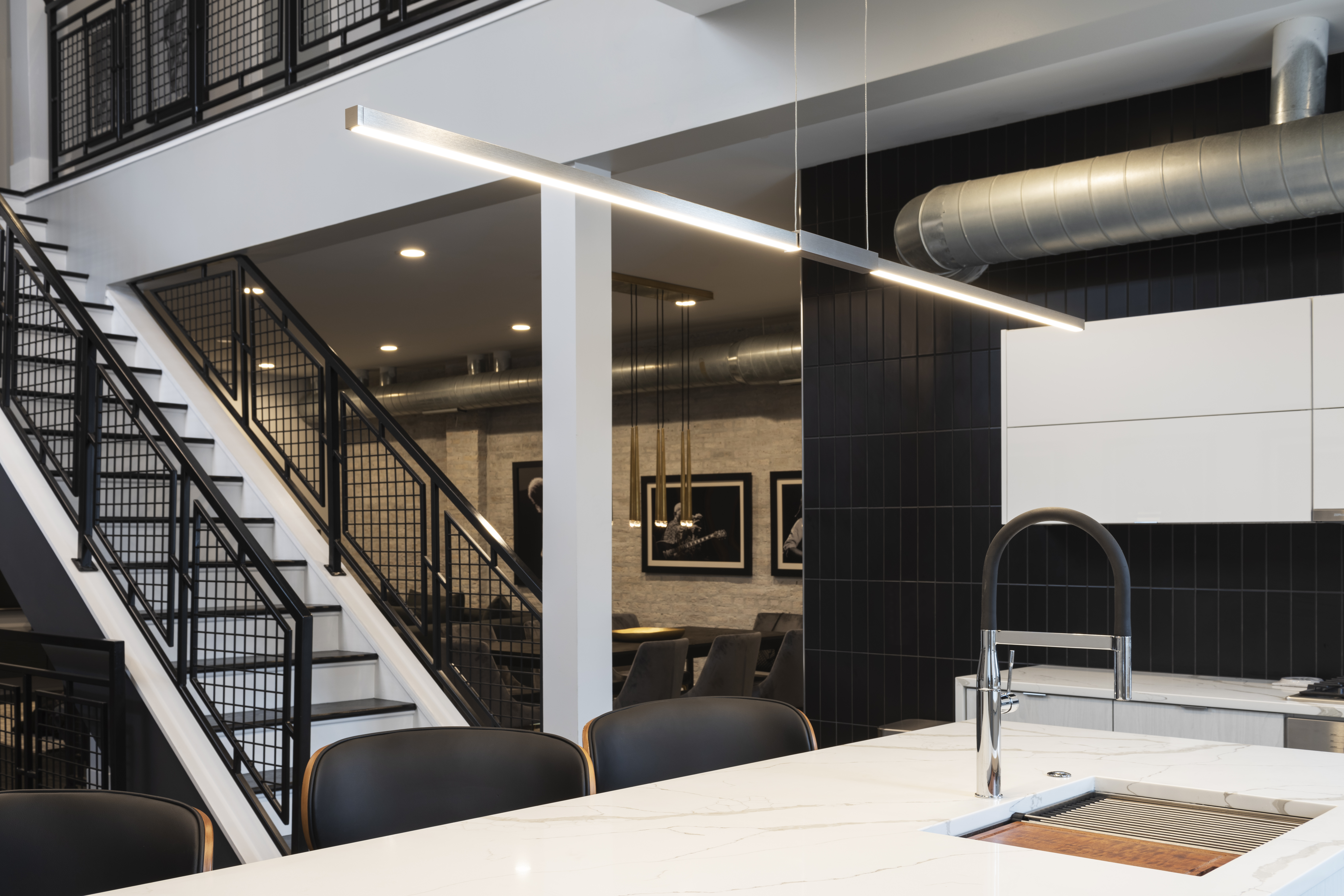 27K6) grants independent control and adjustment of color temperature and intensity from 2000K (Sunset) through 6500K (Day Light White). 2K6K is ideal for residential spaces including dining rooms, bedrooms, living spaces, and bathrooms by allowing the user to achieve a warm glow during the golden hours of the early mornings and evenings. For commercial environments, 27K6 promotes focus and alertness which is ideal for offices, healthcare and education, while still achieving warmer color temperatures best for hospitality and retail environments. Human-Centric lighting, or tunable white, promotes performance, mood, and overall well-being by fine-tuning the emotional effects that light has on the circadian cycle. The Tie Stix Center Feed Tunable White suspension is available in six standard sizes: 39", 48", 60", 72", 84", and 96". Choose from 11 versatile channel finishes, six metal and five genuine hardwood options that pair perfectly with the metal hardware. The suspension includes 12' of adjustable aircraft cables.